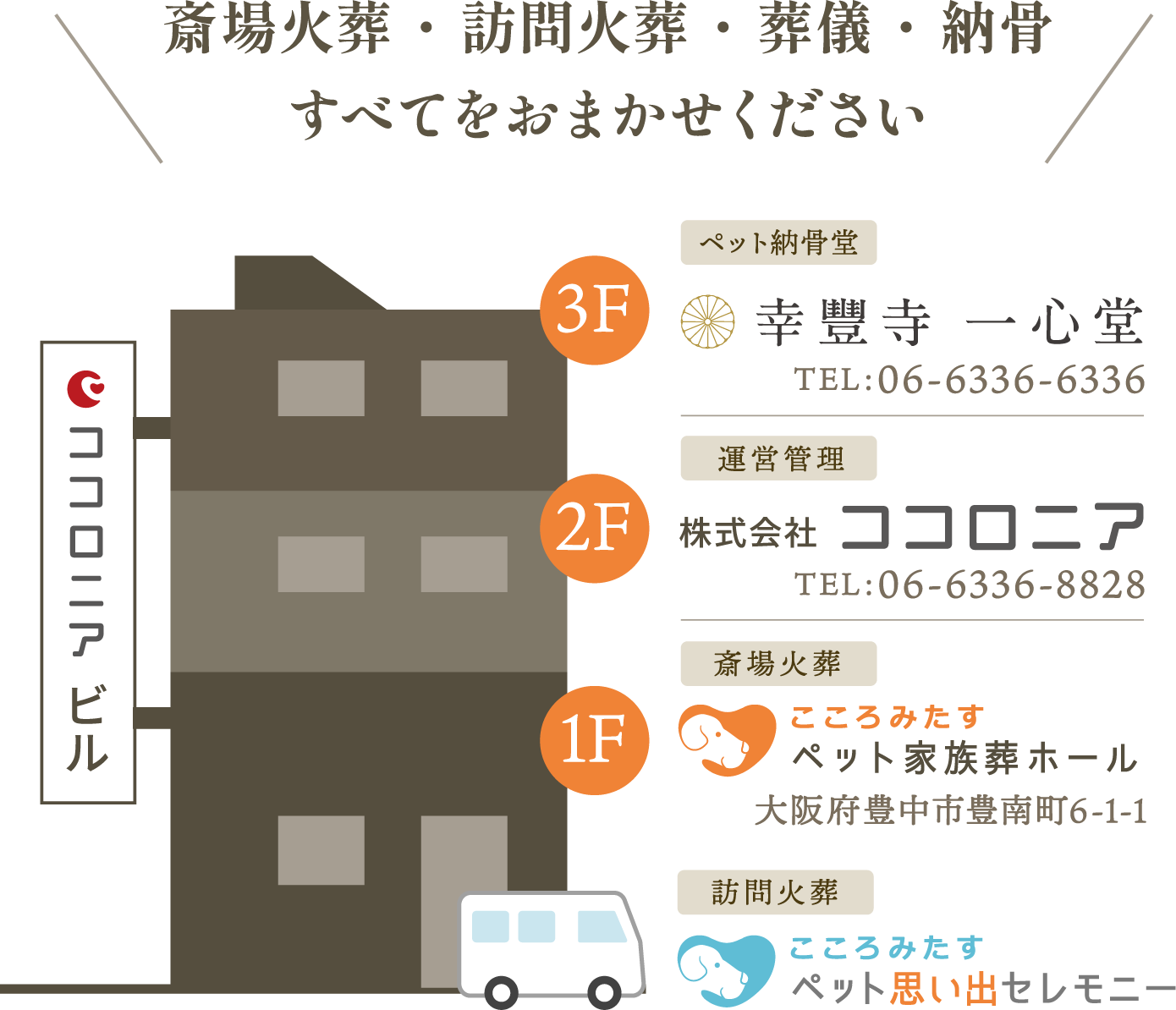 ご予約頂いた日時に豊中市の家族葬ホールへお越しください。当日まではご自宅にてペットちゃんを安置してあげてください。