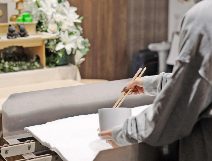 移動火葬車のように道路や駐車場で火葬は行いません。家族葬ホールにて人目を気にせずお別れをし、屋内設置型火葬炉で火葬を行います。火葬が終わるまで待合室でお待ちいただき、終わりましたらホール内でお骨上げを行います。